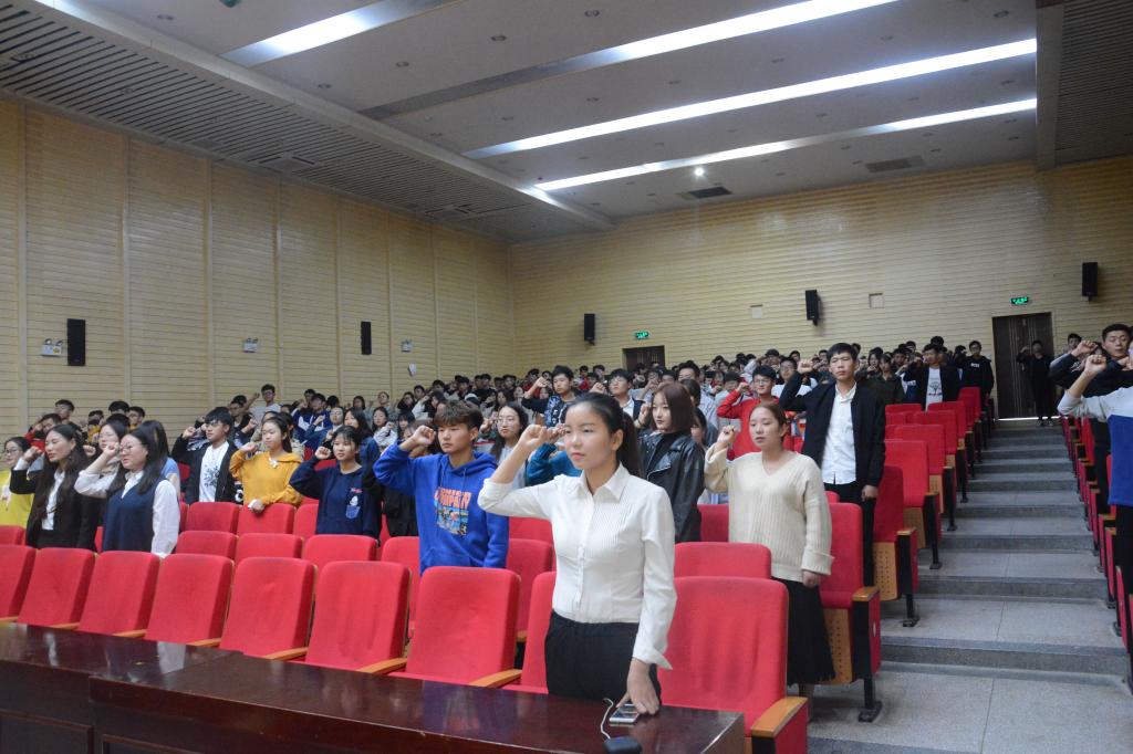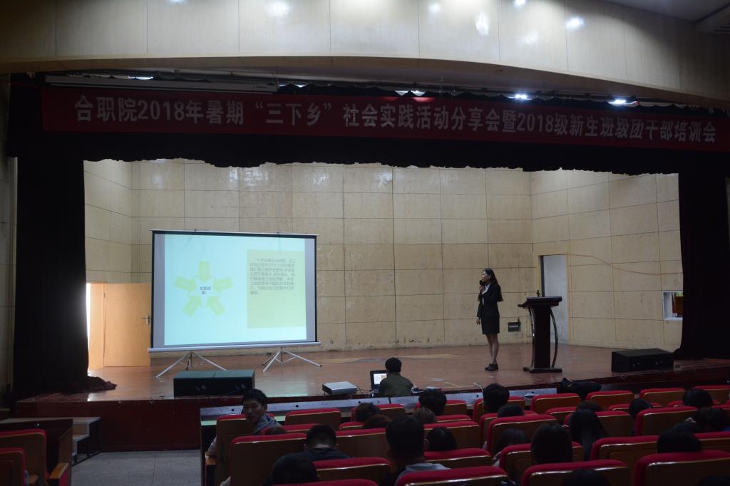 10月24日下午,AC米兰官网2018年大学生暑期“三下乡”社会实践成果分享会暨2018级新生团干部培训会在大学生活动中心举行。2018级新生班级团干部代表四百余人参加了此次活动。