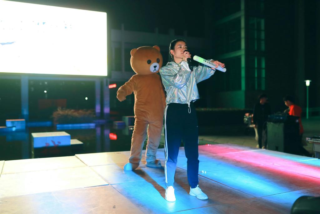 动感十足的街舞表演拉开了夜跑活动的序幕。校党委副书记胡其云致辞。他希望通过夜跑活动能激励广大同学们多参加体育活动锻炼,强健体魄,突显当代大学生积极向上的精神风貌,同时也增进同学友谊,彰显青春激情。在基础教育学院体育教师杨丽娟的带领下,所有同学进行热身运动,调整好身体状态,头戴荧光牛角,手持荧光棒,围绕校园主干道跑起来。同学们挥舞着旗帜,律动的身影,闪闪发光的荧光道具,成为校园里一道靓丽的风景线。