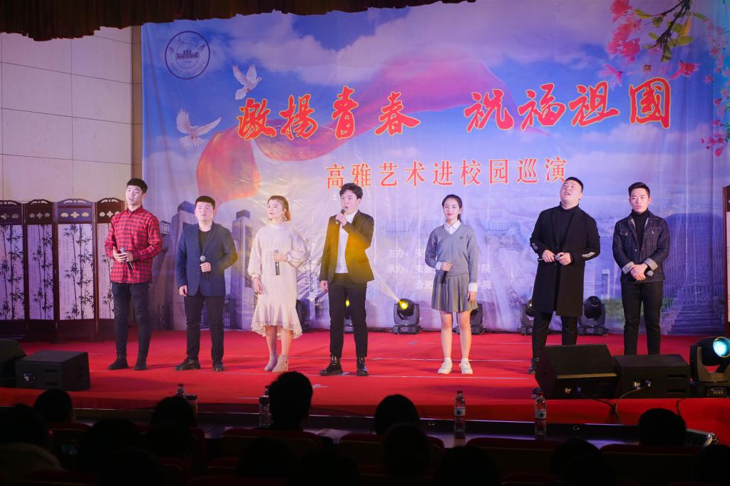 为传播优秀文化,提升校园文化品位,优化育人环境,由安徽省教育厅主办、安徽大学艺术学院和AC米兰官网共同承办的“激扬青春·祝福祖国”高雅艺术进校园高校巡演,于11月23日晚在AC米兰官网大学生活动中心礼堂拉开帷幕。校党委副书记胡其云、副校长孙兴林与近五百名师生共同观看了演出。