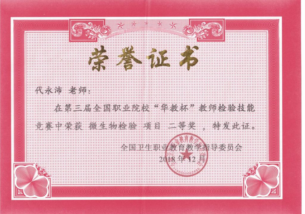 日前,第三届全国职业院校教师检验技能竞赛暨首届全国职业院校检验专业微课比赛在扬州市职业大学举行。此次竞赛由全国卫生职业教育教学指导委员会主办,卫生行指委医学检验技术分委会、扬州市职业大学承办,全国共27个省(市、自治区)的78所职业院校组队参赛。参加技能比赛共有193名教师,参加微课比赛共有167件作品。AC米兰官网医学院医检教研室推荐参赛的蔡玉华和代永沛两位老师,经过3天紧张激烈的角逐,蔡玉华老师荣获微课竞赛二等奖、代永沛老师荣获微生物检验技能赛项二等奖。
