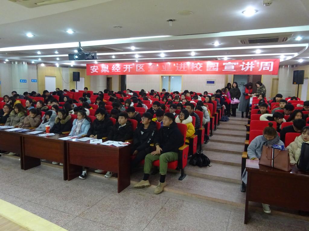 受邀企业有的是上市公司,有的是龙头企业,他们根据自身的用人需求,精心准备宣讲材料,各自把企业的亮点充分展现在学生面前,学生对高科技企业、环境优雅企业、特别是智能企业产生了浓厚的兴趣。安巢经开区人社局领导来到现场,关心区内企业的宣讲材料的宣传力度,更关心企业对学生进企业后的一系列面对的问题,如培训、待遇、成长空间等。