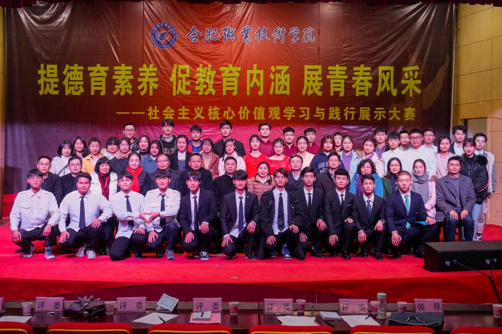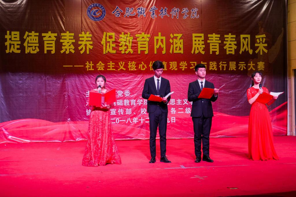 12月19日下午,由校党委主办,基础教育(马克思主义)学院承办,宣传部、团委、各二级学院协办的社会主义核心价值观学习和践行展示大赛在大学生活动中心拉开帷幕。此次比赛邀请了校宣传部部长魏华、学生处处长高恒平、校团委书记佘海月、基础教育(马克思主义)学院党总支书记张海青、基础教育学院院长唐晓武、基础教育学院副院长唐绍霞、教务处副处长窦红平共七位老师担任此次大赛评委。校党委书记罗兆好,党委副书记胡其云,全体思政课教师和部分学生代表共四百余人观看了此次比赛。