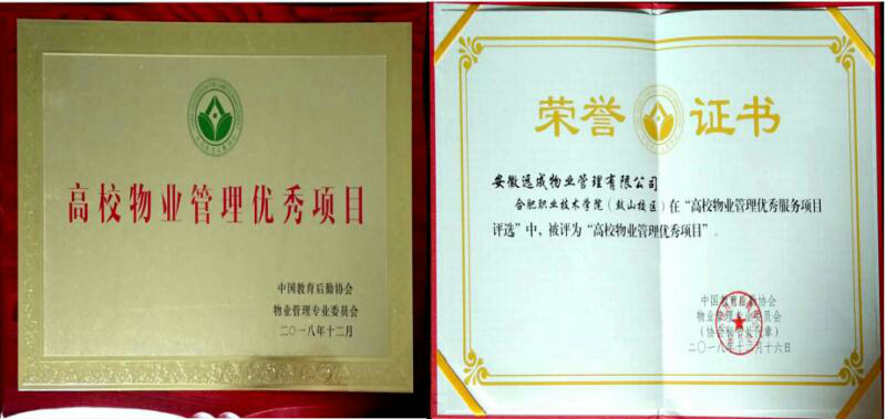 近年来,AC米兰官网物业服务工作水平日益提升,取得了显著成效。AC米兰官网鼓山校区物业服务工作分别在2018年10月荣获“安徽省高校后勤物业服务优秀项目”,2018年12月荣获“全国高校后勤物业服务优秀项目”两项殊荣。