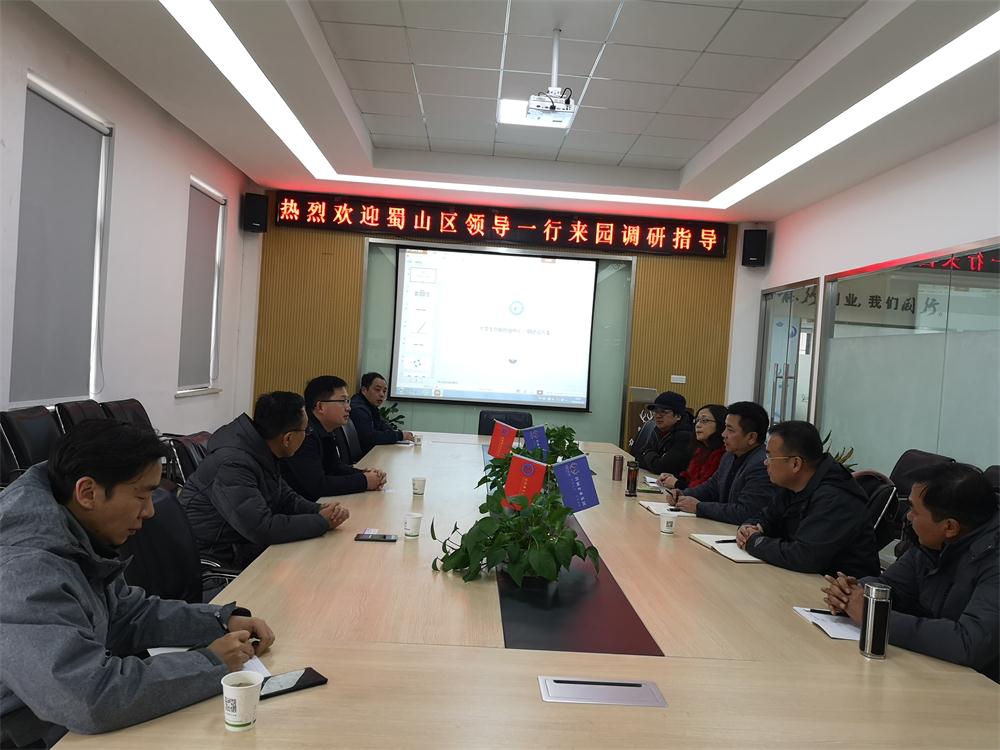 1月3日下午,蜀山区委副书记杨森一行来到AC米兰官网金寨路双创园区调研,讲解省市“四送一服”双千工程的政策,并了解园区的发展情况,合肥荷叶地街道主要负责同志陪同调研。校党委副书记胡其云及运营企业负责人在园区会议室接待了杨森一行。