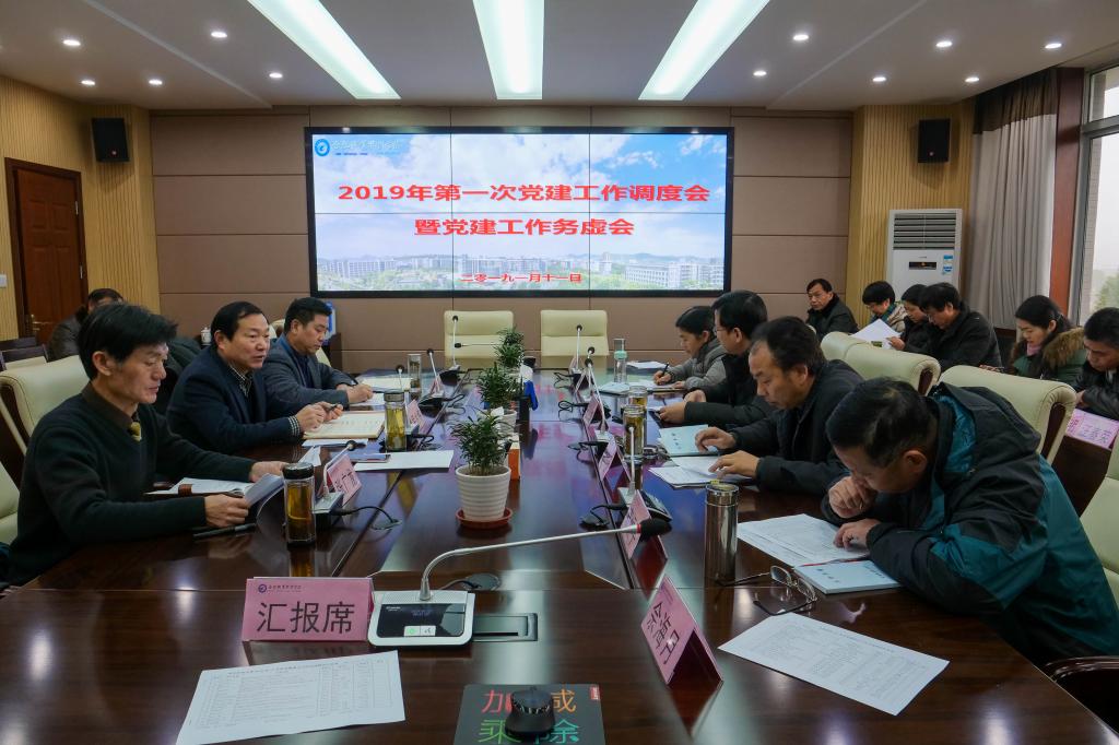 1月11日,学校2019年第一次党建工作调度会暨党建工作务虚会在鼓山校区行政楼三楼会议室召开。校党委书记罗兆好、党委副书记胡其云、工会主席张广龙,学校党群部门和各党总支负责人,直属分党委专职副书记出席会议。会议由罗兆好主持。