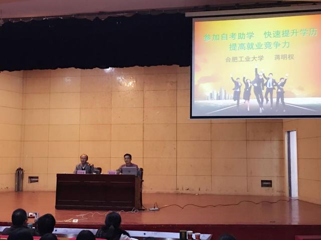 蒋明权主任详细向大家介绍了自学考试相关的五大机构:国家考委、省教育考试院、市教育考试院、主考院校及自考学习服务中心的相关职能,进而深入剖析在校大学生为什么要报考自学考试,详细解读了目前安徽省对自学考试及自学考试服务中心的大力优惠政策,对自学助学过程中常见的问题进行了集体答复。最后,蒋明权主任鼓励我院莘莘学子要把握机会,积极报名参加自考助学专升本,提升学历,为以后好就业、就好业提供学历保障。