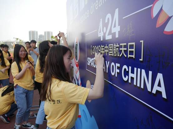 “希望全体同学们能继承和发扬中国航天精神,学习航天人热爱祖国、崇尚科学、自强不息、艰苦奋斗、勇攀高峰的优良品质,以所学知识报效祖国,为建设中国梦合肥新篇章贡献自己的青春力量,以优异的成绩向祖国70华诞献礼!”魏华对同学们说道。