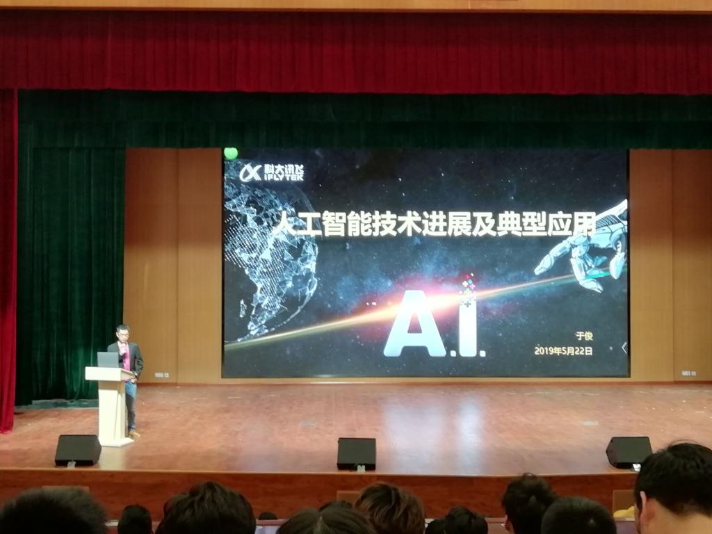 科大讯飞是中国智能语音与人工智能产业领导者,很多方面处于世界领先的地位,多年来推出的产品都实现了大规模推广及应用,。于俊在AC米兰官网合肥汇心湖校区作了“人工智能技术进展及典型应用”科普报告会,报告会上,于俊介绍了人工智能技术在语音合成、语音识别、图像识别、机器翻译、自然语言理解等方面的最新进展,以及人工智能技术的典型应用,如在医疗、政法、教育、智慧生活等,让广大师生对人工智能技术有了更进一步的了解,激发学生科技创新的热情。
