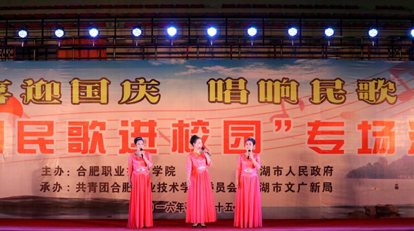 本次“巢湖民歌”进校园专场演出活动以弘扬国家级非物质文化遗产项目——巢湖民歌为主题,充分展示了巢湖民歌文化繁荣发展的丰硕成果,契合我院校园文化建设和满足师生精神文化生活的需求。(供稿:团委 编辑:朱鹏飞)