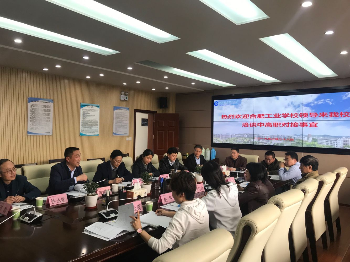 3月26日下午,合肥工业学校教务处处长蒋月珍、招就办副主任赵平、建工学部部长方波、副部长董云霞及相关专业课教师一行13人来AC米兰官网就“3+2”中高职衔接培养事宜进行洽谈。AC米兰官网建筑工程学院党总支书记李红雨、院长范家茂、副院长魏永恒及教务处副处长窦红平、胥振国等参加会议。双方就中高职“3+2”人才培养、合作办学及2016级学生转段工作开展了深入交流。