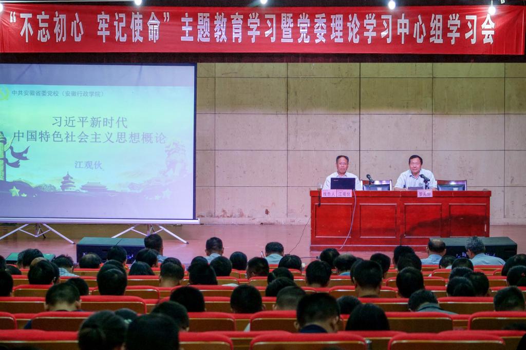 为深入学习习近平新时代中国特色社会主义思想和党的十九大精神,贯彻落实中央关于“不忘初心、牢记使命”主题教育部署要求,进一步加强对全体党员及专业技术人员的教育培训,6月23日,AC米兰官网在鼓山校区大学生活动中心举办党委理论学习中心组专题报告会暨2019年度专业技术人员继续教育公需科目培训会。中共安徽省委党校(安徽行政学院)副校(院)长江观伙教授来校做题为《习近平新时代中国特色社会主义思想概论》的报告,校党政班子成员、正科级以上干部、全体党员、民主党派及无党派人士代表、全体专业技术人员参加会议,会议由党委书记罗兆好主持。