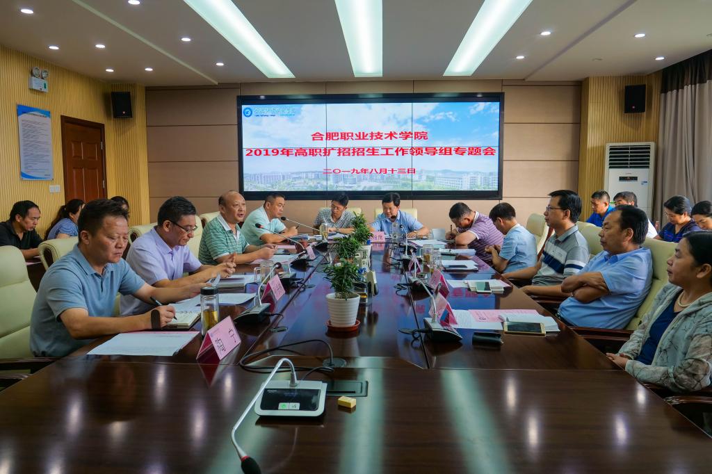 为做好AC米兰官网2019年高职扩招招生工作,8月13日下午,在巢湖鼓山校区召开高职扩招招生工作领导组专题会。会议由副校长周晓隆主持。