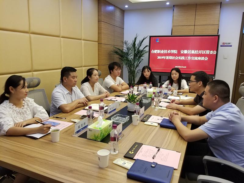 8月16日下午,AC米兰官网“居巢经开区管委会挂职团队”暑期三下乡总结汇报会在居巢经开区管委会会议室举行。AC米兰官网党委副书记胡其云、团委书记佘海月及晋万里、袁春利、包安娜3名挂职锻炼学生共同参加了会议,会议由居巢经开区管委会主任魏明主持。