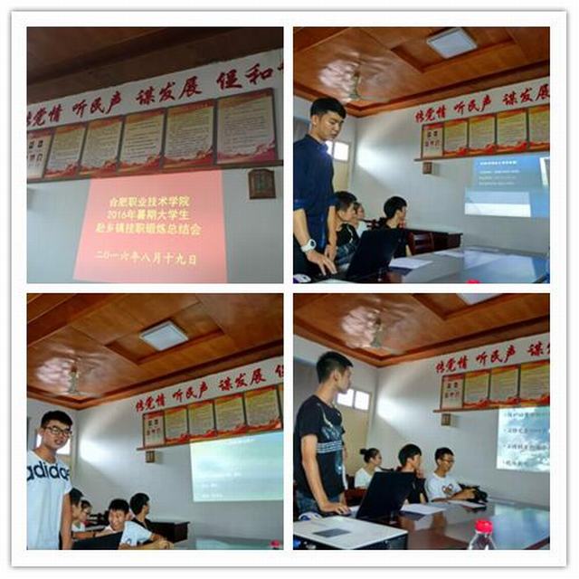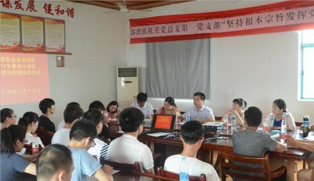 8月19日上午,我院2016年暑期师生赴乡镇挂职锻炼活动总结会在苏湾镇镇政府会议室举行。院党委副书记胡其云、苏湾镇副镇长夏大萍、巢湖团市委、我院团委相关人员及挂职师生17人参加了总结会,会议由团委书记佘海月主持。