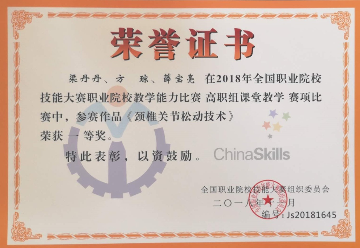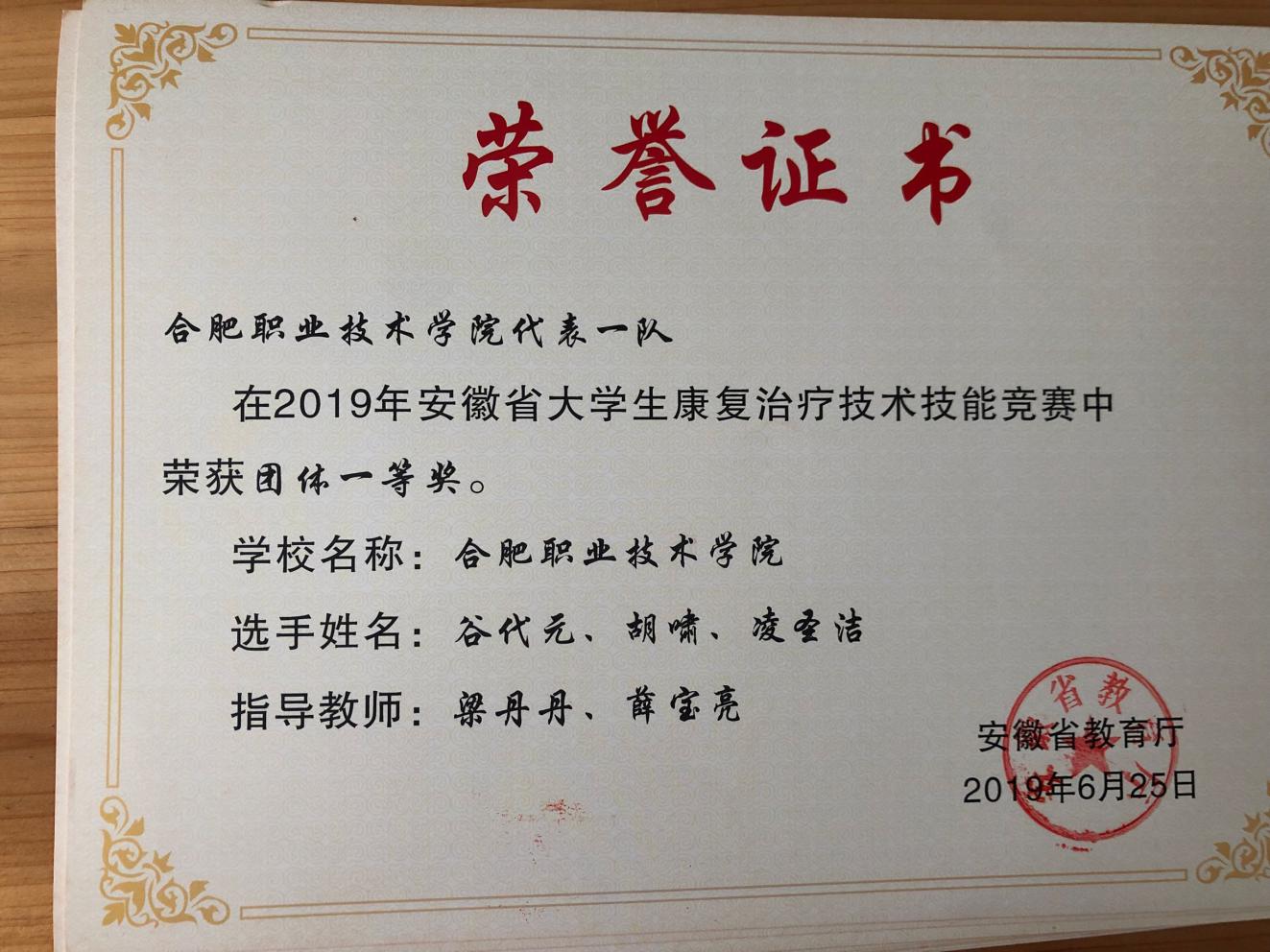 梁丹丹老师还积极联系企业,对接岗位需求,主重学生实践技能的培养。2019年指导学生获安徽省大学生技能竞赛康复治疗赛项一等奖,优秀指导教师。积极开发符合学情的校本教材,带领团队成功申报编写康复专业校本教材《综合实训》。