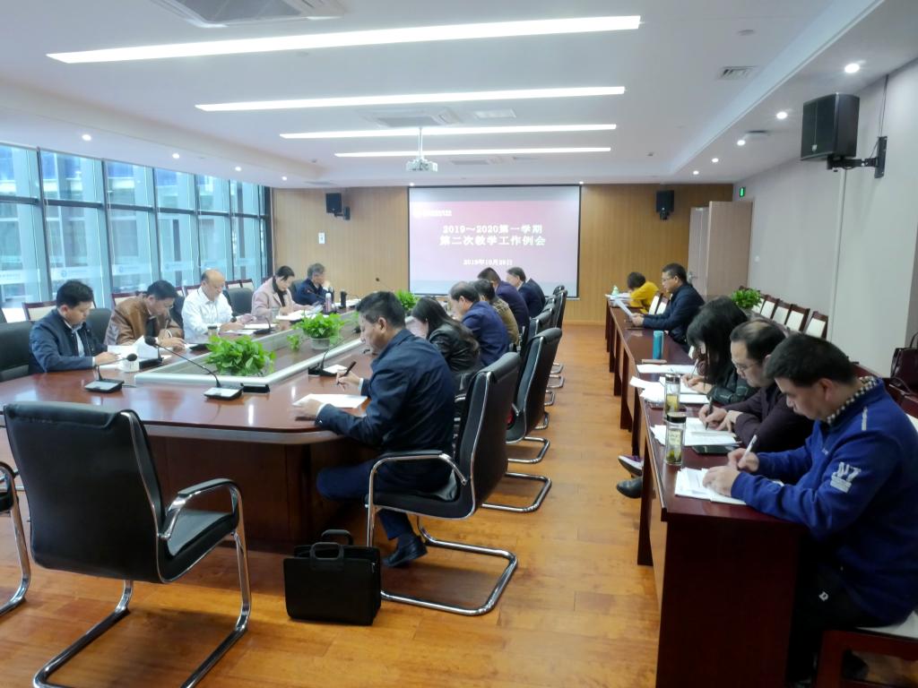 10月29日上午,AC米兰官网在汇心湖校区图书馆楼525会议室召开本学期第二次教学工作例会。教务处、科技处、现教中心、教育教学督导评价中心正副职及各二级学院正副院长等参会。会议由副校长周晓隆主持。