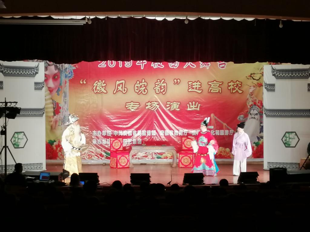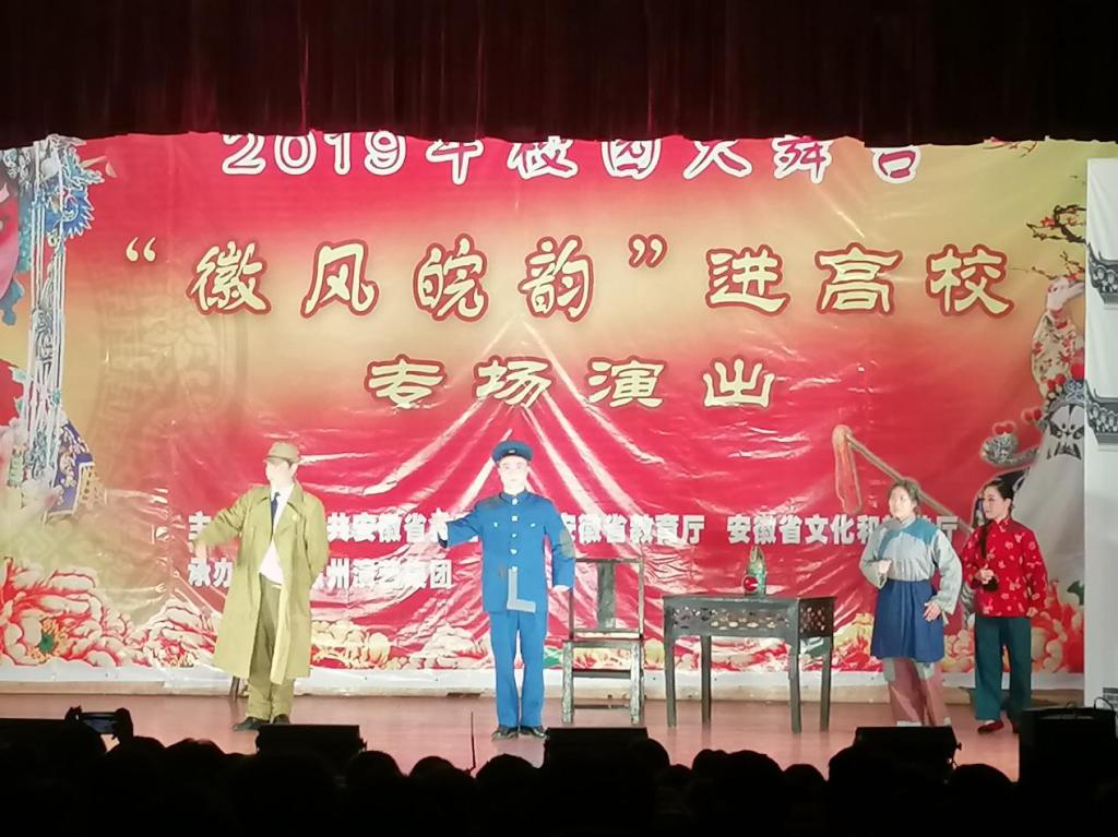 为弘扬优秀文化,传承戏曲艺术,丰富校园文化生活,培养学生兴趣爱好,由滁州演艺集团举办的高雅艺术进校园之“徽风皖韵黄梅戏专场”于10月25日在AC米兰官网鼓山校区大学生活动中心礼堂上演。