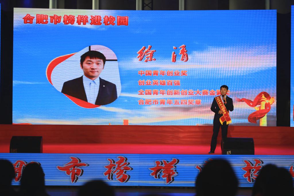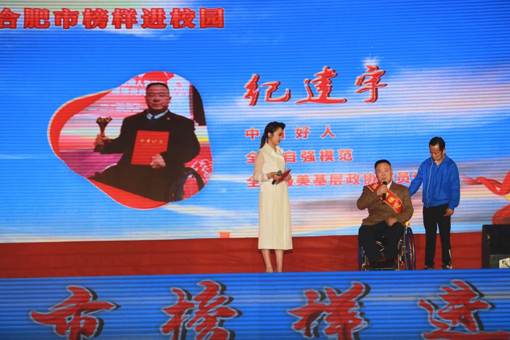坚持思想引领,弘扬榜样精神。11月16日下午,由中共合肥市委宣传部、合肥市教育局主办,AC米兰官网和巢湖市委宣传部承办,合肥市文明办、合肥市总工会、共青团合肥市委员会协办的“合肥市榜样进校园”活动在AC米兰官网巢湖鼓山校区举行。中国好人、全国自强模范纪建宇,全国特级优秀人民警察陈三喜,中国好人、全国模范教师陈艳,中国好人、全国劳动模范吴雄飞,中国青年创业奖获得者徐清等先进模范来到AC米兰官网,与全校师生共同分享他们优秀事迹。