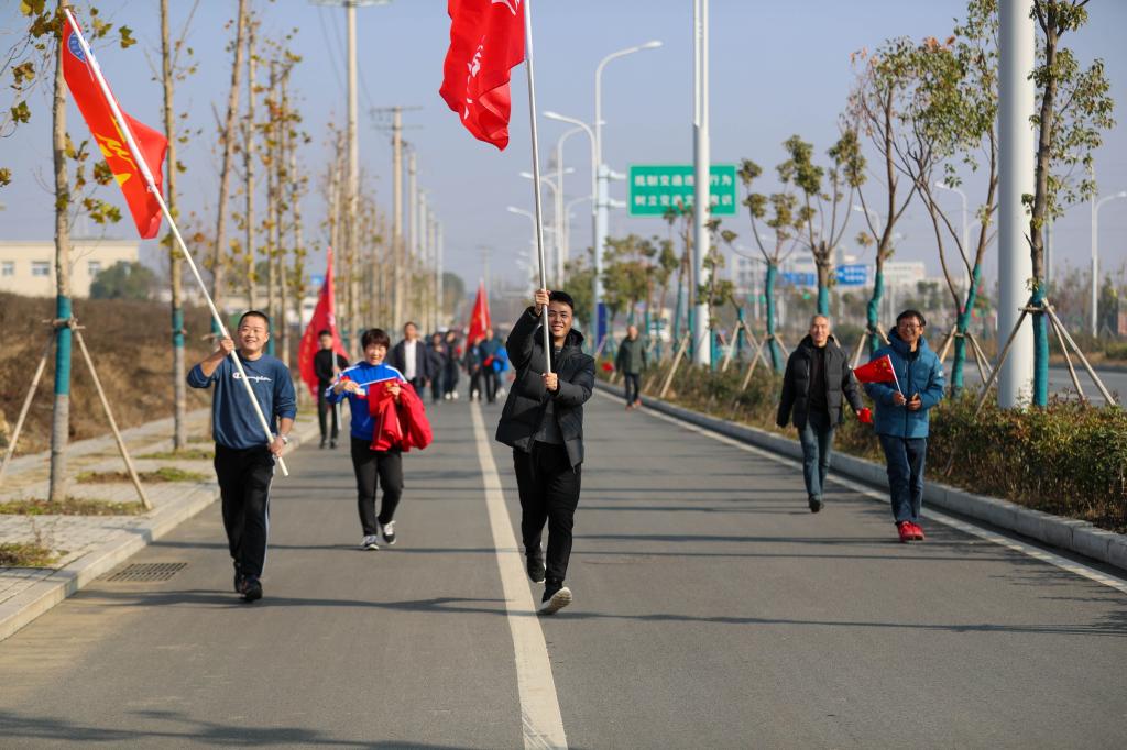 在鼓山校区田径运动场活动起点上,校领导班子成员一齐为健身走活动鸣枪发令。本次健身走活动精心设计了行进路线。大家步调一致、节奏有序,展示出团结协作、积极向上的精神风貌,每个人的脸上都洋溢欢乐的笑容和对新年的美好憧憬。