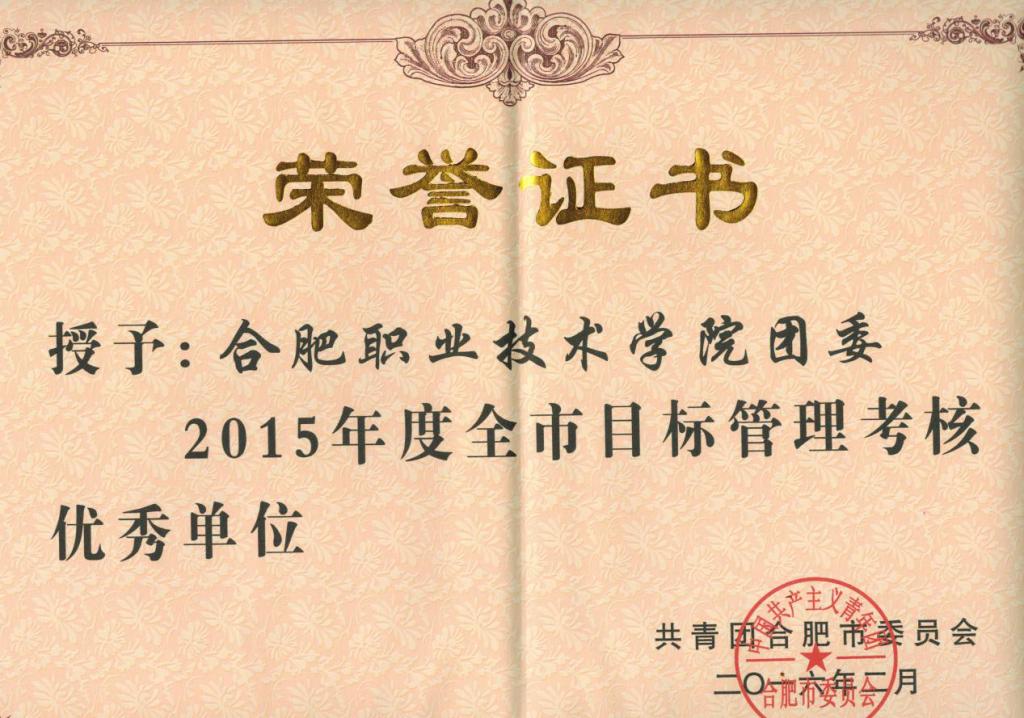 近日,共青团合肥市委员会印发了关于表彰2015年度合肥市“五四红旗团(工)委”、“优秀共青团干部”、“优秀共青团员”的决定。我院团委荣获“2015年度合肥市五四红旗团委”、“2015年度合肥市目标管理考核优秀单位”,团委书记佘海月、团委副书记王克勇荣获“2015年度合肥市优秀共青团干部”荣誉称号,高坤杨等六位同学荣获“2015年度合肥市优秀共青团员”荣誉称号。