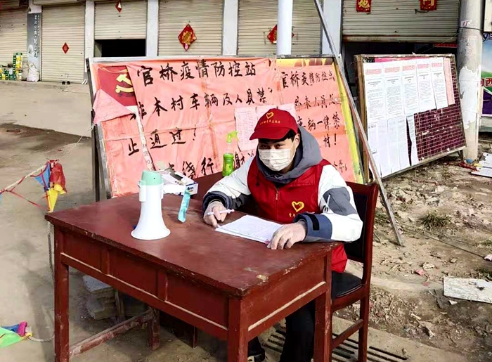 他说:“新型冠状病毒感染的肺炎疫情一直牵动着全国人民的心。全国各地科学部署,把疫情防控工作作为当前最重要的工作来抓,我作为一名大学生,作为一位护理专业的学生,更有义务参加此次疫情防控的工作。面对疫情我不仅要管好自己,还应发挥特长,与时俱进,将自己的知识传递给身边其他的人,凝聚正能量,以坚定的理想信念,打赢鼠年首场战‘疫’。我此次参加志愿者从2020年1月29日至今,主要的工作是,在当地道路设卡处,进行出入成员的登记工作,进行体温检测,进入村庄进行相关宣传工作,督促村民减少外出,出行戴口罩。常言道,位卑未敢忘忧国。在疫情防控的严峻斗争中,我自当砥砺前行,奋力担当。做一名合格的志愿者。”
