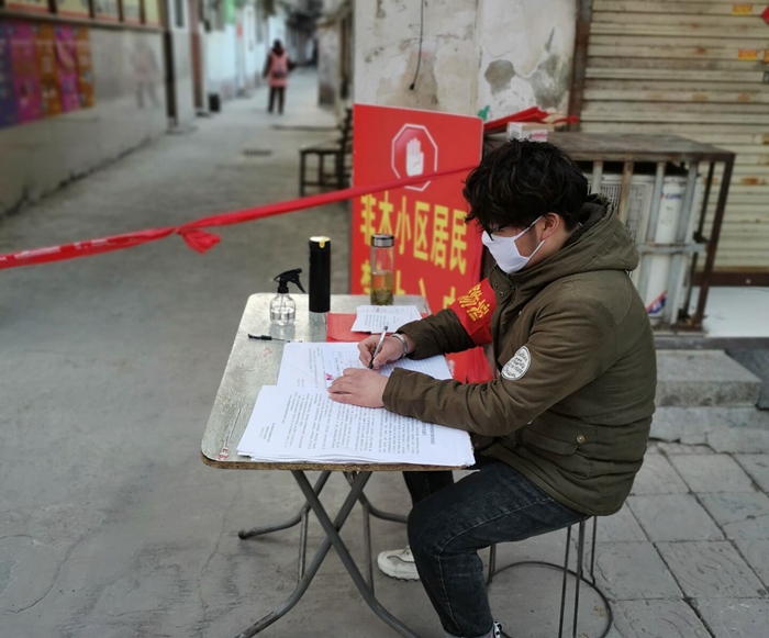 “你好,请到这里登记下,给你办张出入证”“没有特殊情况的话,请尽量不出门”……像这样一遍一遍地温馨提醒,每天都会重复着。从当志愿者到现在已经十天了,陈凤怡的工作地点就在自己社区的小区。每天的工作主要是检查外来人员,做好小区的隔离工作。详细登记返乡人员信息,督促他们居家隔离14天,为保护居民群众撑起安全防护伞。“虽然做得不多,但是我觉得能为小区做好防护工作,贡献自己的微薄力量值得骄傲。”她说道。