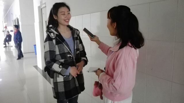 杨章涵同学来自安徽宿州,当问到对我院的印象和面试感受时,她说:“这边环境挺干净,空气很好。学校的老师都很和蔼,学长们都很热情,感觉很温馨。我报考的是助产专业,应该是接生和照顾宝宝吧!合职是我的第一志愿,分类考试招生对我们来说门槛会低一些,面试的时候有些紧张,但总体感觉还不错。”