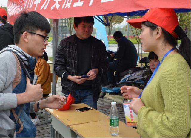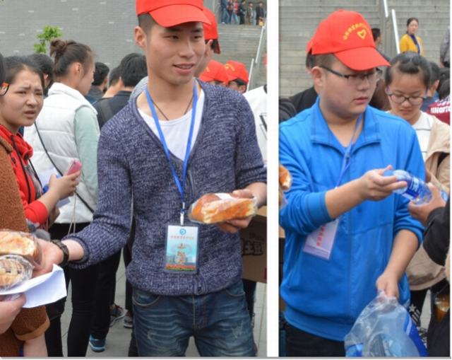 4月5日早上6:30,志愿者们集合完毕,奔赴各自岗位。志愿服务站点的同学们精神抖擞,笑容满面,耐心解答考生的问题。体育场外,考生们在志愿者的安排指引下排起了长龙般的队伍,秩序井然;中午时分,还为排队的考生们送上了面包和水。报到处,志愿者们协助老师填写表格,发放准考证,维持现场秩序。食堂里,志愿者们开展文明就餐劝导,倡导“光盘行动”。宿舍区,志愿者们引领考生及家长参观宿舍,了解住宿设施和环境。协助招生就业处老师接听考生电话咨询和协助后勤部门发放午餐券的志愿者们也耐心、细致地完成了任务。