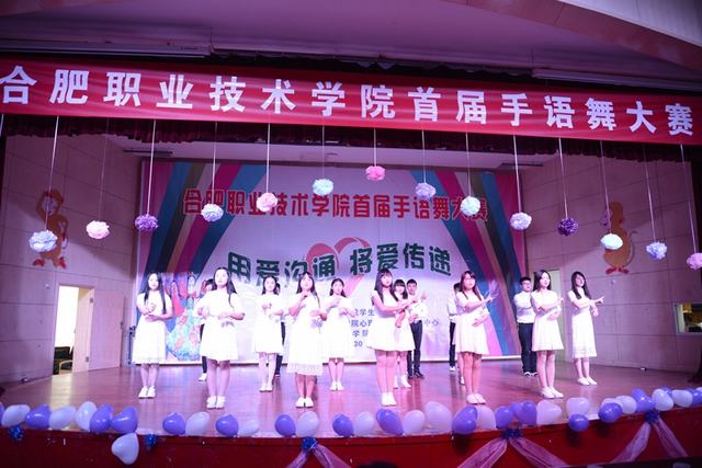 优美的旋律,绚丽的舞蹈,璀璨的舞台,热情的观众,合职学子集聚一堂。来自各系(分院)共计15个参赛队伍的表演精彩纷呈,尽显风采。灯光下的舞者一次又一次地用充满青春热情的手语舞蹈给观众带来视觉的享受与心灵的感动。真挚感人的《天亮了》、情景交融的《阳光总在风雨后》、美好憧憬的《仰望星空》、进取向善的《三德歌》、唯美动人的《冰凌花》、激情奋进的《怒放的生命》、涓涓恩情的《跪羊图》、青春活力的《我最闪亮》……别出心裁的队形转换,细腻流畅的动作展示,舞蹈与手语巧妙结合,勾勒出一幅幅动人的画面,手语之美,尽显其中。最后,经贸系15工造2班代表队的《国家》获得本届手语舞大赛一等奖。