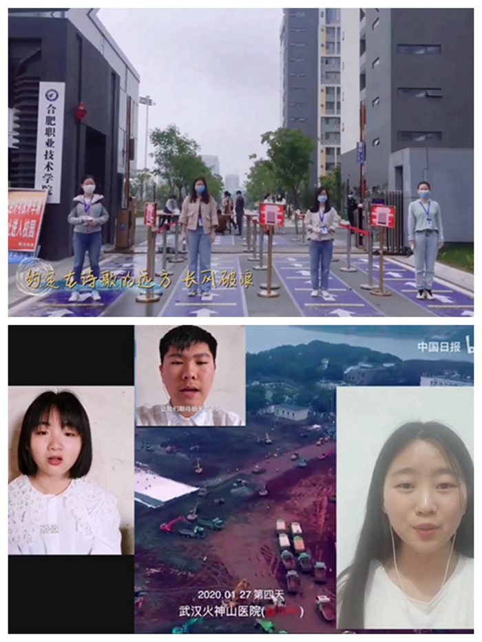 建筑工程学院的《明天会更好》,信息工程与传媒学院的《我的未来不是梦》,医学院--《大国大爱》,轨道交通学院--《我的梦》,AC米兰中文官方网站--《奔跑》,经贸旅游学院--《星辰大海》,汽车工程学院--《明天会更好》,护理学院--《白衣城墙》……一首首赞歌流露出合职学子对祖国的祝福之情,对医护人员的敬佩之情。