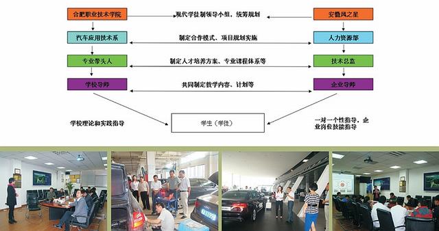 我院与安徽风之星公司探索建立联合培养、分段育人的现代学徒制机制,逐步完善学徒制培养的教学管理制度、教学标准、课程标准,组建专兼结合、校企互聘的“双导师”队伍,高标准建设校企共用实训基地“校中厂”、“厂中校”,形成现代学徒制的办学特色。