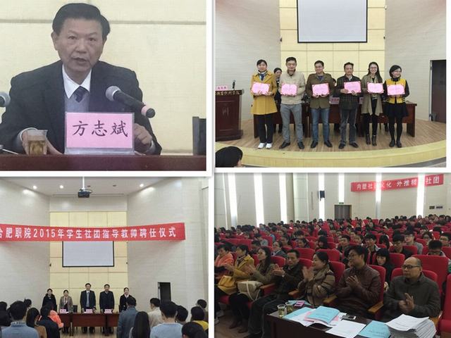 11月10日下午,我院2015年学生社团指导教师聘任仪式在图书馆二楼报告厅如期举行。院长方志斌及办公室、宣传统战部、组织人事处、团委等相关部门负责人,学生社团指导教师及社员代表参加了仪式。会议由团委书记佘海月主持。