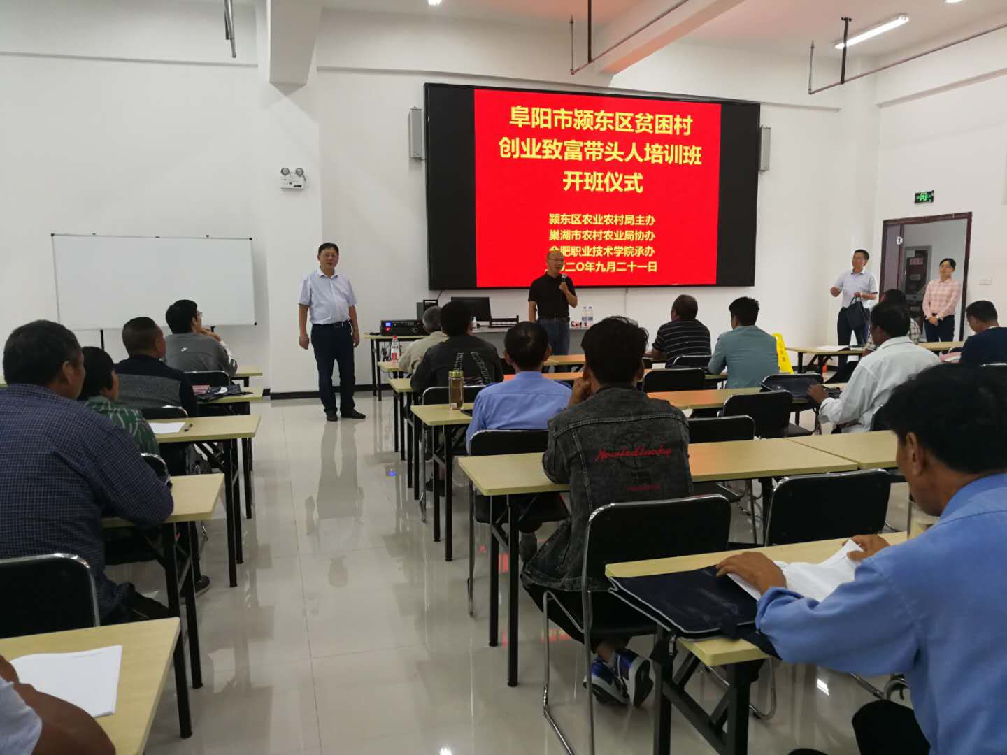 为加强培育贫困村创业致富带头人,更好地发挥致富带头人“领头雁”作用,促进产业扶贫和科技扶贫提质增效,9月21日,由阜阳市颍东区农业农村局主办、巢湖市农业农村局协办、AC米兰中文官方网站承办的2020年 “贫困村创业致富带头人”培训班在AC米兰官网鼓山校区开班,颍东区各乡镇的50多名创业致富带头人参加培训。