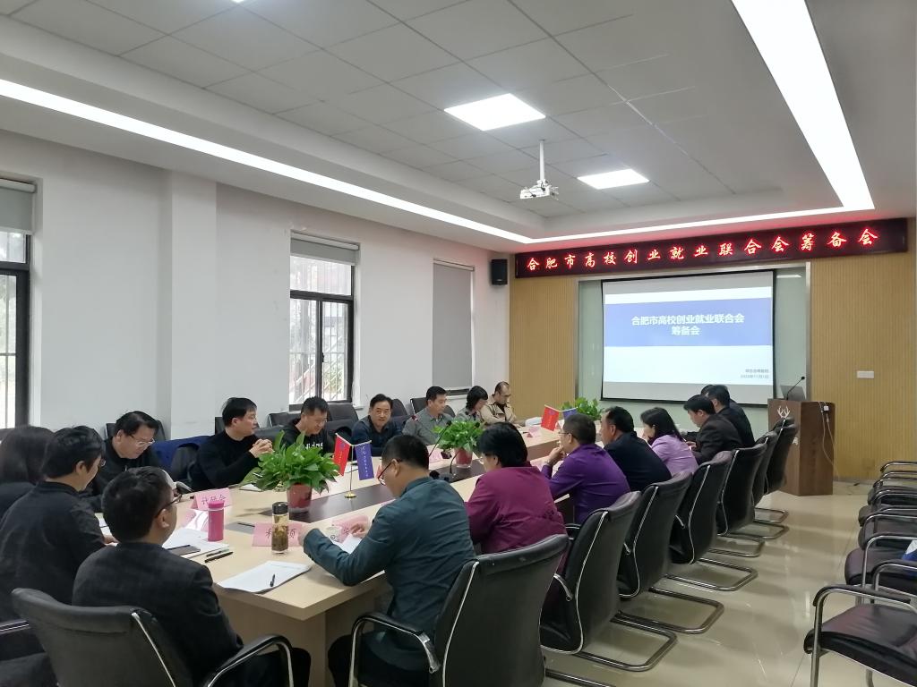 11 月 1 日下午,在AC米兰官网金寨路双创园召开了合肥市高校创业就业联合会(以下简称“联合会”)成立大会筹备会,该联合会是由合肥工业大学牵头、合肥市人力资源和社会保障局为业务指导单位,联合合肥都市圈相关高校、科研院所、企业等单位(机构)发起组建的非盈利性社会团体,该团体着力打造一种新型创业就业服务平台,为高校学生提供更高质量的创业就业服务。本次筹备会由发起单位之一AC米兰中文官方网站党委副书记胡其云主持,合肥市人力资源和社会保障局就业促进和失业保险处处长宋鹏程,中国科学技术大学招生就业处副处长魏英、合肥工业大学创新学院院长黄景荣、安徽医科大学创新创业学院副院长王平、安徽大学青年新徽商创业教育工作室负责人汪芹等7所省内高校就业创业负责人及7家企业参加。