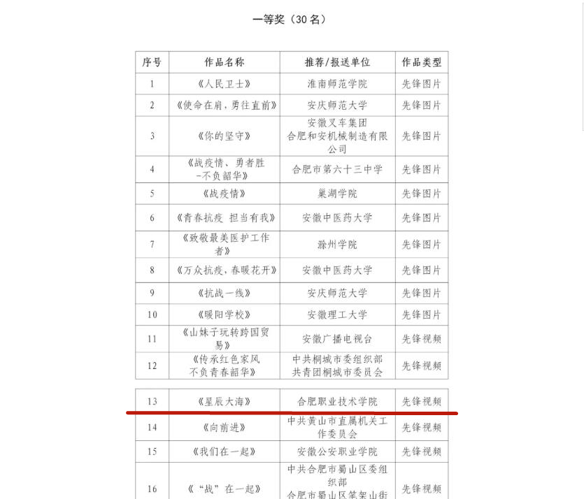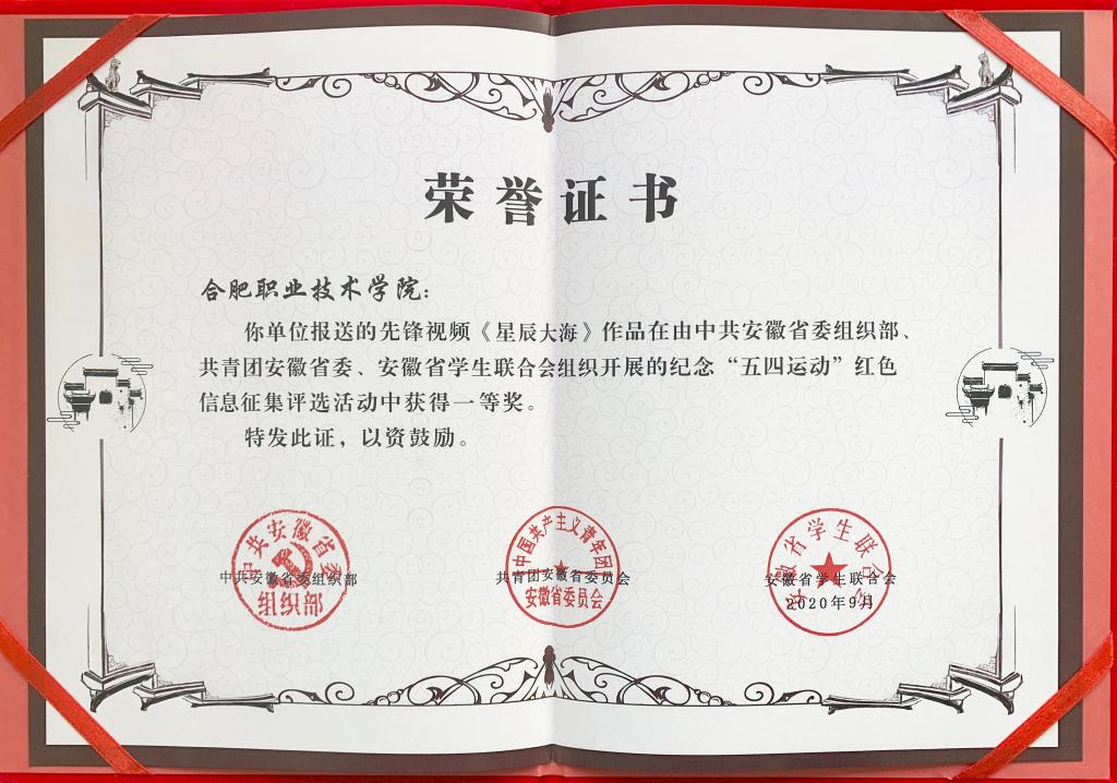 近日,由经贸旅游学院团总支剪辑制作选送的先锋视频作品《星辰大海》在安徽省组织的纪念“五四运动”红色信息征集活动中荣获一等奖。