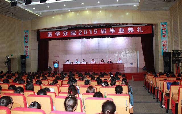 5月14日下午三时整,医学分院2015届学生毕业典礼在院大学生活动中心礼堂隆重举行。学院党委书记丁家康,学院相关职能部门负责人出席了典礼。典礼由医学分院党总支书记高恒平主持。