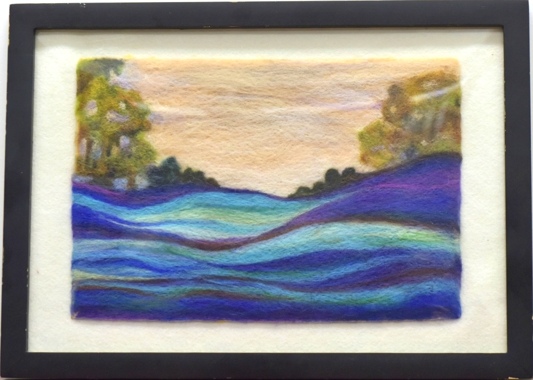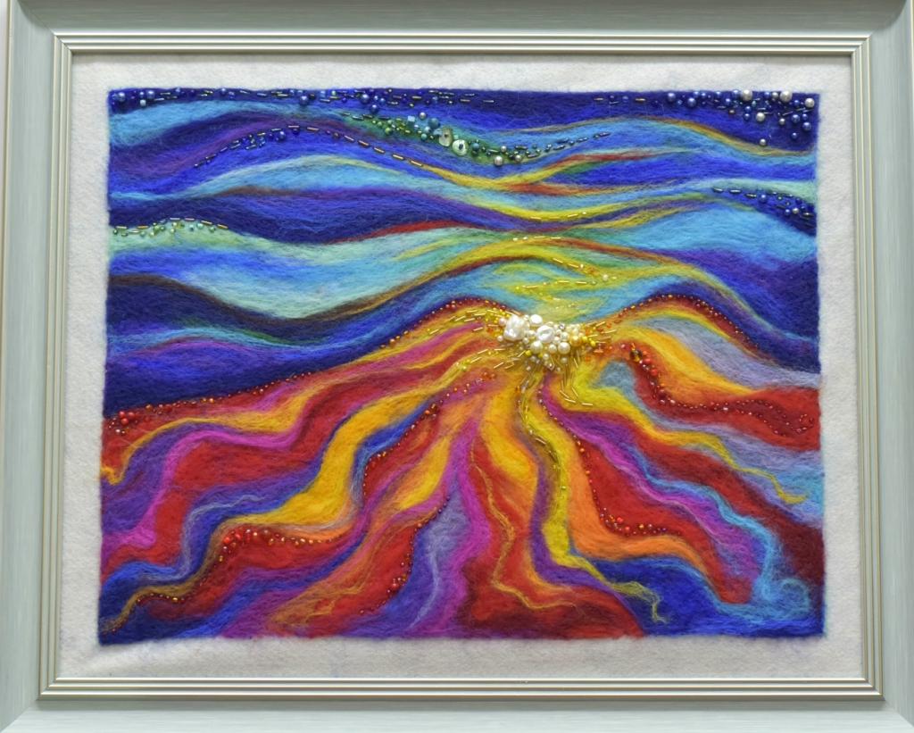 珠绣羊毛毡装饰画 大湖朝阳——刘姝珍
