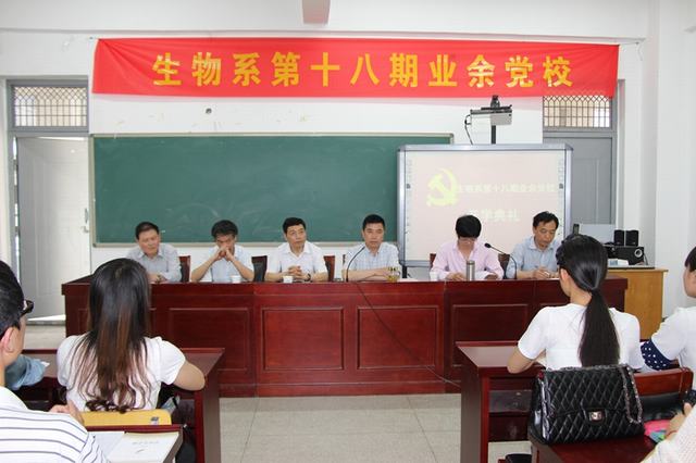 典礼在庄严的国歌声中开始。生物系党总支书记宁业群首先介绍了本次业余党校的开办情况,并要求同学们倍加珍惜学习机会,在学习中树立远大理想,坚定政治信念,提升自身素质,发挥标杆作用。