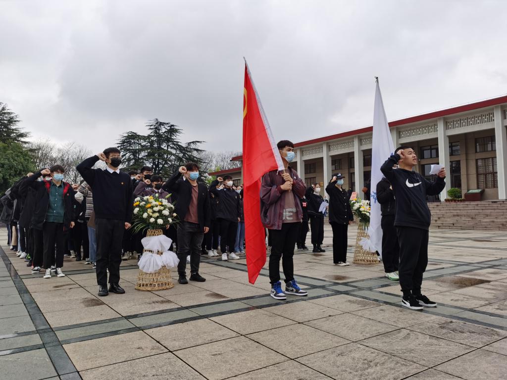 校团委老师和团员青年们共同在蜀山烈山陵园进行了文明祭扫,缅怀烈士,学生代表向英雄烈士敬献鲜花,在纪念碑前沉痛默哀,并重温了入团誓词。(供稿:团委 编辑:杨璨)