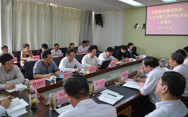 4月30日,在按照要求完成了评估工作的各个环节之后,评估专家组在我院行政楼三楼会议室召开评估工作反馈会,评估专家组全体成员,合肥市教育局副局长唐文水,院领导班子全体成员,各系(分院)、各部门负责人参加会议。