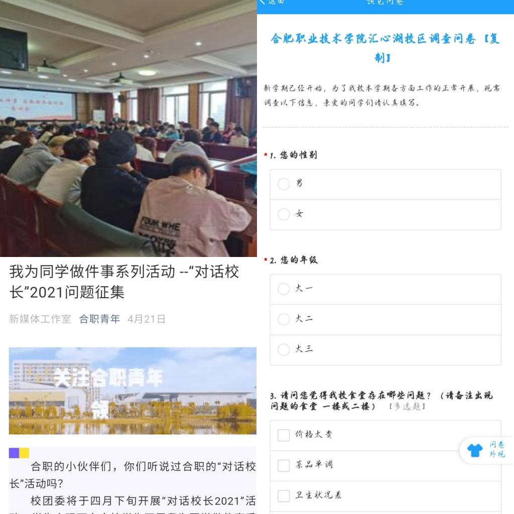 “对话校长”2021问题征集。“对话校长”活动是AC米兰官网共青团工作的一项品牌活动,在活动开始之前,校学生会面向全校同学开展“对话校长2021”问题征集,并在众多问题中选择“培养体育爱好”、“学校封闭管理”、“学历提升”等与当代青年学生息息相关的话题,通过“对话校长2021”活动现场开展提问,更好地搭建起学校与学生之间沟通交流的重要平台。搭建权益维护平台。为第一时间听到同学们的声音,了解同学们最迫切、最真实诉求。校团委与校学生会通过将每学期两次的线上调查问卷与线下定期召开权益大会的方式相结合,联合学校各职能部门,建立面对面的沟通解决渠道,将服务落到实处。“后勤服务面对面”交流会。4月21日下午,校学生会在鼓山校区行政楼五楼会议室举办了“后勤服务面对面”交流会。校团委、总务处、后勤服务各企业负责人出席会议。通过学生问、经理答的形式, 40名同学代表就学生餐厅、学生宿舍、教学楼、浴室、超市等方面提出了合理化建议。学生逐个反映问题后,后勤服务各企业经理进行现场解答,对于会上不能立即解决的问题,参会的部门也认真作了记录,确保会后在经过论证充分后予以尽快解决。