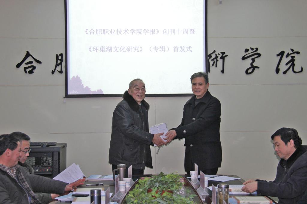 会议最后,方志斌院长代表编委会感谢各位领导、专家一直以来对学报的关心和指导。丁家康书记将学报十年来“环巢湖文化”栏目文章编撰而成的《环巢湖文化研究》(专辑)赠送给安徽省研究环巢湖文化的四家研究机构。