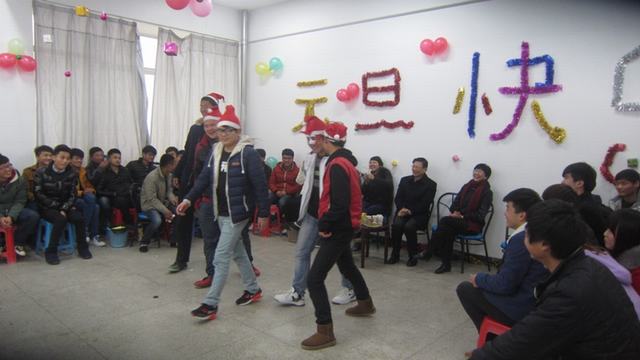 12月25日下午,院长方志斌来到经贸系13建工3班元旦晚会现场,与同学们一起共迎新年。今年是13级同学在校的最后一个新年,同学们对此次晚会表现出了极大的参与热情。全体同学既是观众,也是演员。晚会以一支充满温情的《爸爸去哪儿》手语舞开场,小品、舞蹈、双簧等精彩节目轮番上演,穿插其中的互动小游戏更是将晚会气氛推向高潮。