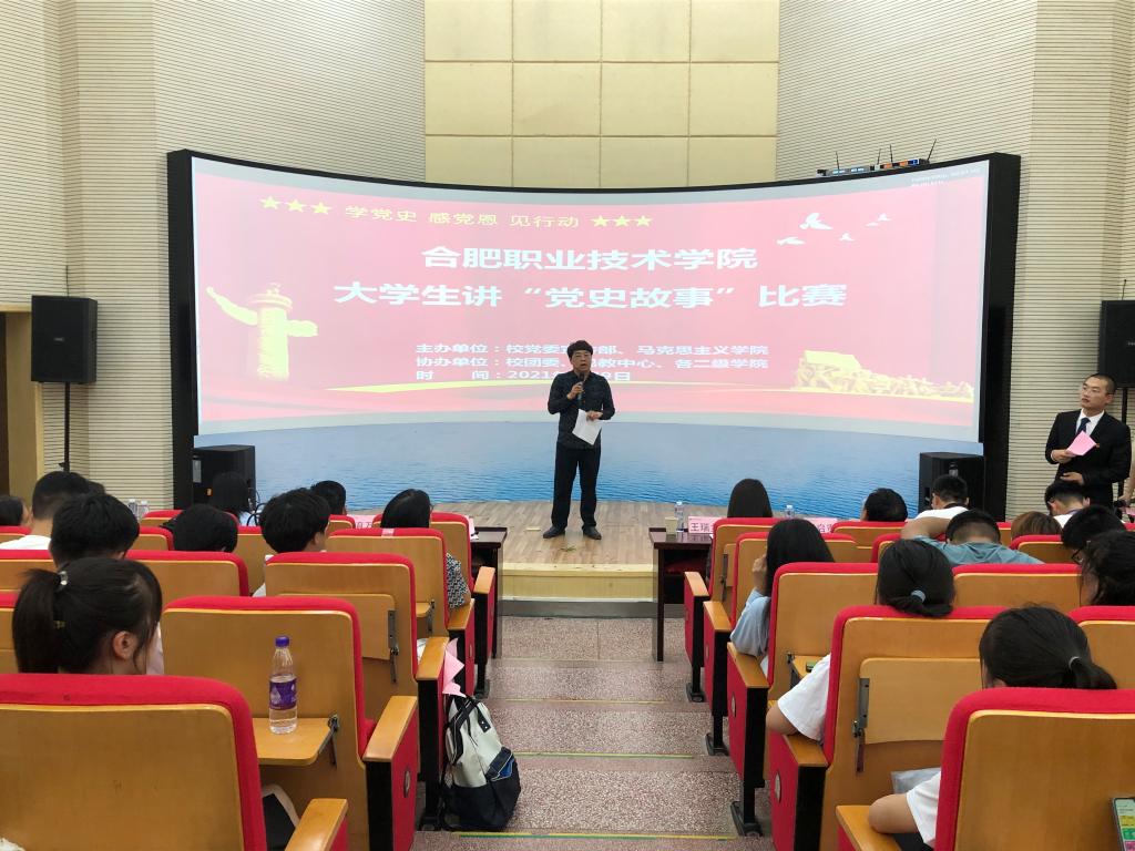 为深入学习贯彻习近平总书记在党史学习教育动员大会上的重要讲话精神,扎实开展党史学习教育系列活动,激励广大青年学生厚植爱党爱国情怀,坚定不移听党话、跟党走,6月9日下午,校党委宣传部和马克思主义学院联合举办的“学党史 感党恩 见行动”大学生讲党史故事主题教育活动在鼓山校区图书馆二楼报告厅拉开帷幕。安徽医科大学临床医学院马克思主义学院教授罗育万,合肥幼儿师范高等专科学校马克思主义学院教授王瑞兰以及合肥市广播电视台公共频道副总监、主任播音员、巢湖市演讲朗诵协会会长许瑞杰等评委应邀出席了本次活动,鼓山校区管委会主任周泽山、全体思政课专职教师和部分学生代表观看了此次活动。