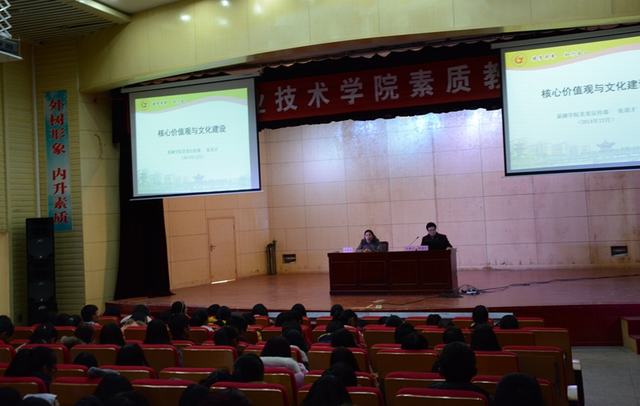 12月17日下午,巢湖学院党委宣传部部长张道才应邀来到我院的素质大讲堂,为大学生们作了一场题为“核心价值观与文化建设”的专题讲座。我院党委宣传部部长魏华主持讲座。