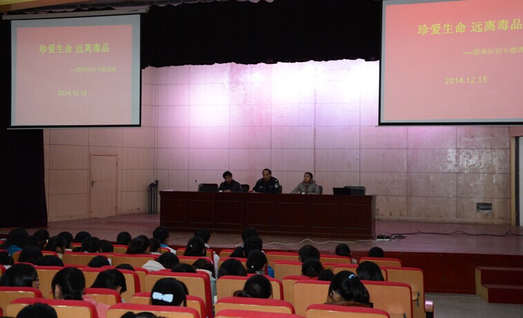 为了使大学生认识毒品的危害,增强自我保护意识,预防毒品犯罪,12月15日下午,我院与巢湖市禁毒大队共同开展以“珍爱生命 远离毒品”为主题的禁毒宣传进校园活动。巢湖市禁毒大队大队长吴强、学院宣传部部长魏华、学生处处长祝建平、团委书记佘海月及近500名师生代表参加了此次活动。
