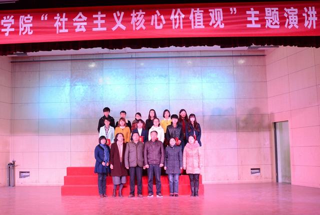 12月10日下午,由院宣传部和团委联合举办的“培育和践行社会主义核心价值观”主题演讲比赛在大学生活动中心二楼多功能厅举办。评委由办公室、组织人事处、宣传统战部、招生就业处、学工部、团委、思政部等相关部门负责人担任。12名选手从第五期“青年马克思主义者培养工程”大学生骨干培训班中选拔参赛。