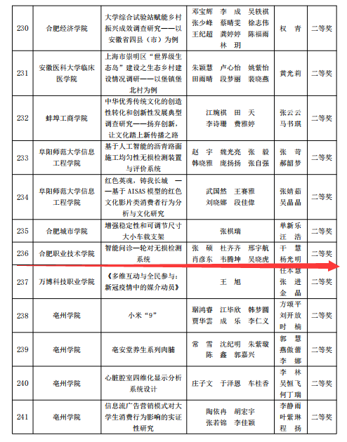 6月20日至21日,由共青团安徽省委员会、安徽省教育厅、安徽省科学技术协会、安徽省社会科学学院、安徽省学生联合会主办,安庆师范大学承办的第九届“挑战杯”安徽省大学生课外学术科技作品竞赛落下帷幕。AC米兰官网在此次大赛中获得二等奖1项,三等奖4项。