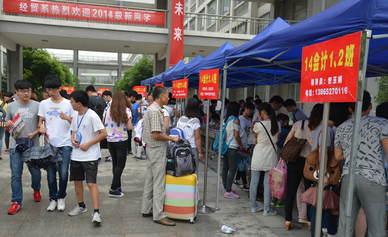 学校在火车站、汽车站等处设置了接待站点,在学院入口的主干道旁,设立了新生报到总咨询台,新生入学报到流程展示牌放置在校门口及各报到点醒目的位置,生活用品领取及一卡通办理集中一处,且靠近学生生活区。对于要求转专业的同学,学院以学生为本,挖掘教学资源,尽量满足学生要求,并尽量简化转专业的手续。报到现场,相关职能部门工作人员坚守工作岗位,耐心细致的为新生提供入学服务,各系(分院)的工作人员热情接待,积极认真地为新生办理各种入学手续。学生志愿者们冒雨在车站组织新生及家长有序乘车,在校内做好引领并帮助新同学搬运行李,铺设床铺。尽管是雨天,但秩序井然,流程通畅,不少系部(分院)开放了实验室和会议室,既方便家长及新生避雨休息,又让家长和新生们知晓了学院的办学条件和学习环境。