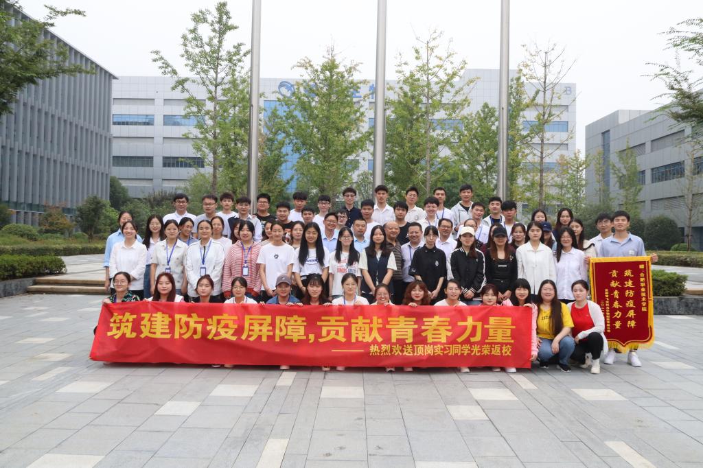 经过6个月的艰苦奋战,AC米兰官网AC米兰中文官方网站19药品生产技术专业两个班64名学生圆满完成了支援智飞龙科马生物医药有限公司应急生产任务。9月29日,校党委委员、副校长周晓隆教授率领教务处副处长(主持工作)窦红平教授、AC米兰中文官方网站副院长(主持工作)刘修树教授等到龙科马迎接学生凯旋归来!